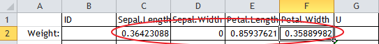 u = 0.364 x Sepal.Length + .0859 x Petal.Length + 0.359 x Petal.Width