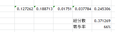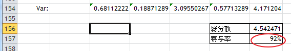 • 寄与率は 主成分の分散 / トータルの分散 で求める。