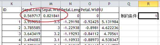 Sepal.Widthはuに対して全く貢献していないことがわかる。