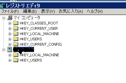 次にリモートクライアントにこの設定をimportするのだが、ここでひとつ問題が出る。このキーはHKCU以下のキーでありユーザーがログインしたときに、ユーザーの環境に合わせて設定される。よってリモートでこのキーにインポートしてもエンドユーザーのレジストリに保管されるわけではない。さらにリモートレジストリで見てみるとHKCUは表示されないことがわかる。