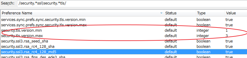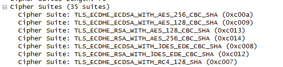 確認してみると暗号化プロトコルはTLS_RSA_WITH_RC4_128_MD5が両方で使えるらしい。