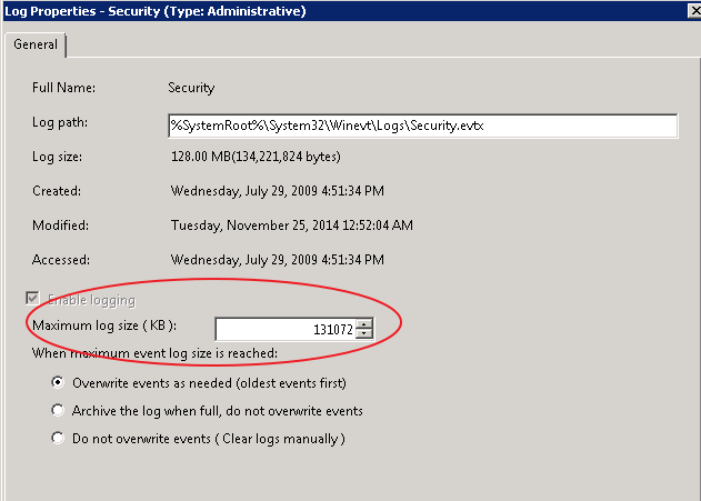 Windowsサーバーでイベントログをチェックする際に、過去のログが残っていないことがある。Securityログなどはログイン数が多いために、すぐに上書きされる。