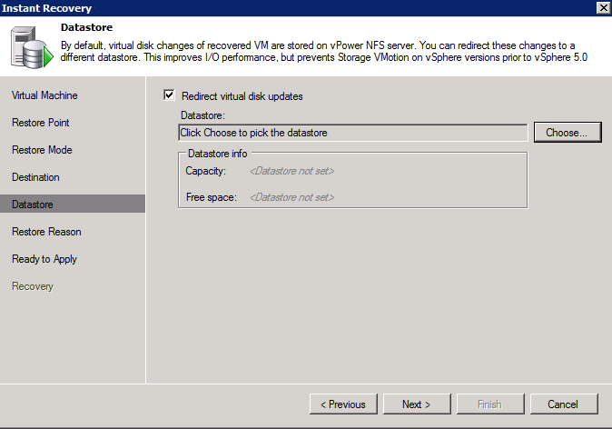 For a virtual lab, only a datastore can be chosen for the updates to the virtual disks to increase lab performance.