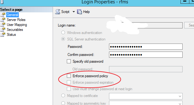 SQL Server Login Properties to Enforce Password Policies and Expiration