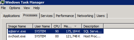 プロセスを確認するとSQL Serverのプロセスであることがわかった。
