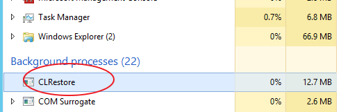 リストア先で見てみるとCLRestoreプロセスがハングしているように見える。5分ほど見ていてもメモリ使用量が10MBで何も変わらない。