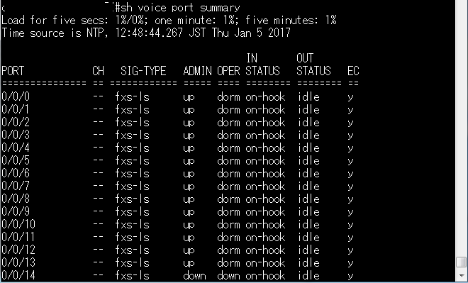 voiceポートの確認はsh voice port summaryで確認ができる。
