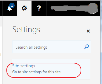 Office 365へログイン。設定アイコンをクリックして、Site Settingsを選択