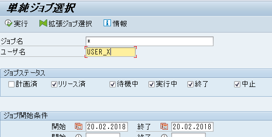 テーブル照会画面でJob Nameから探したいジョブを探す