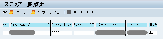 ステップをクリックするとプログラム名/コマンドが表示される。