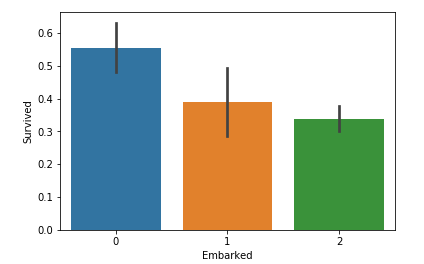 <div>sns.barplot(x='Embarked', y='Survived', data=d_train)</div>