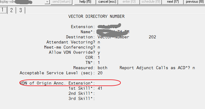- CORを設定、”Hear VDN of Origin Annc.”を”y”にする。