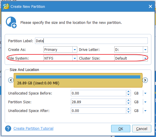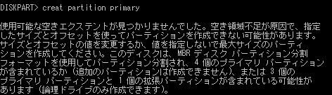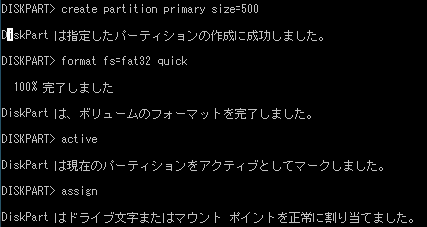 一つ目のパーティションを作成、フォーマット、ドライブを割り当てる。