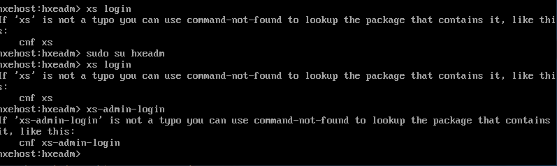 次に関係がありそうなTest SAP HANA, express editionを見てみる。xs-admin-loginおよびxsコマンドを入力せよと出る。
