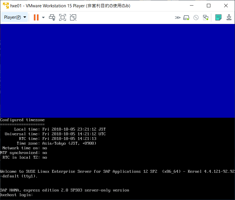 仮想環境がようやく動いたのでHANAを設定する作業に移る。