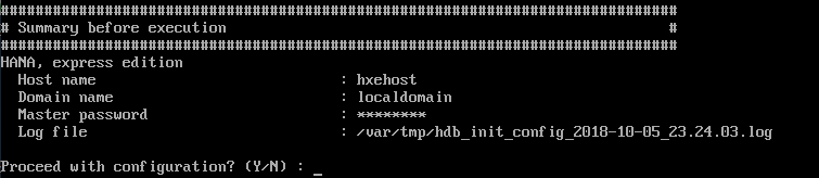構成前確認画面が表示される。”y”と入力すると構成が開始する。