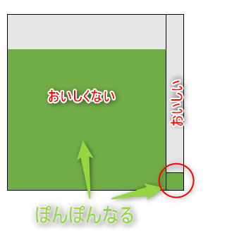 さてP(ぽんぽん∩おいしい)について考えると以下の式は今回の場合成り立たない。確率の積は互いに独立でなければならないが、この条件では「ぽんぽん」と「おいしい」は