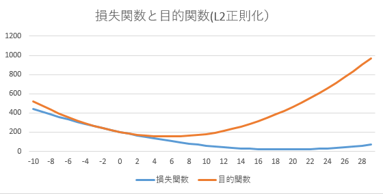 データの損失があっても、低い重みのほうが評価が高くなる(目的関数が低くなる)。